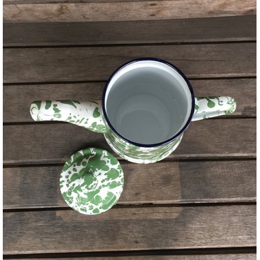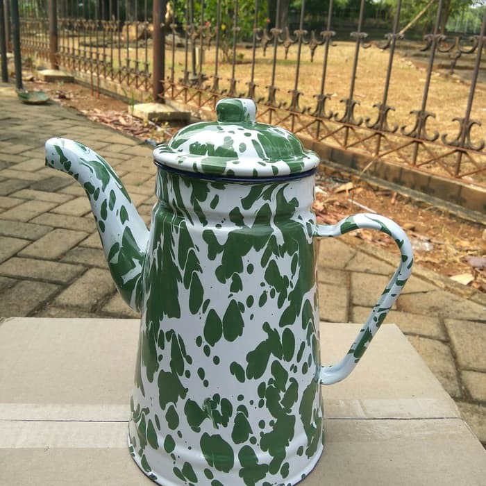 TEKO CERET ESKAN ENAMEL SENG KALENG BURIK BLIRIK BLURIK LURIK LORENG HIJAU JADUL ANTIK KUNO 13 CM