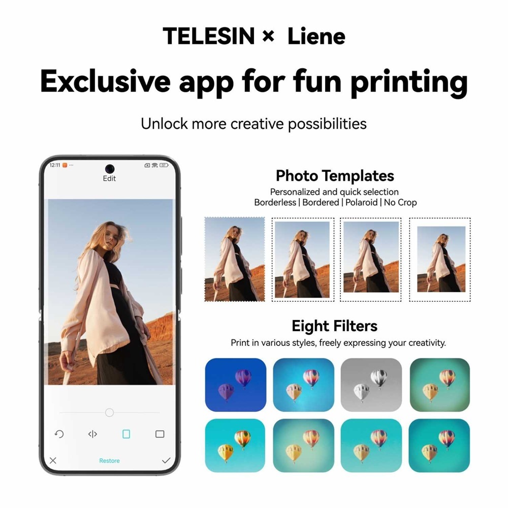 TELESIN LIENE Paket Portable Photo Printer 300dpi Wireless Bluetooth Mini Printer with ZINK