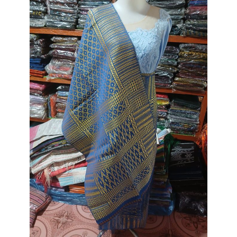 TEMPAHAN - SONGKET PIALA KOSONG BENANG KOREA FULL SIRAT KRISTAL SONGKET ULU TORUS SONGKET PENGANTIN BATAK TENUNAN TARUTUNG KAIN LILIT BIRU GOLD