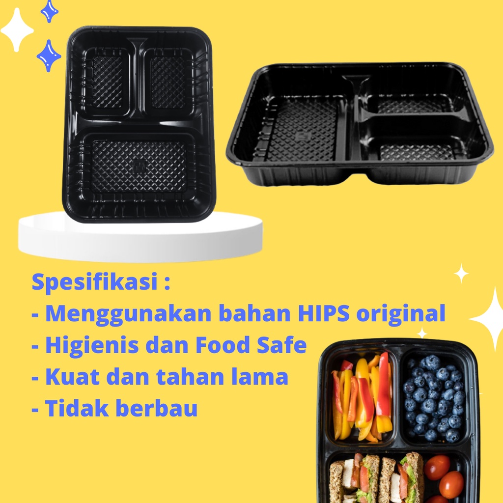 TEMPAT BENTO 3 SEKAT, MIKA BENTO, BENTO TRAY - BOX BENTO - LUNCH - PREMIUM - WADAH + TUTUP