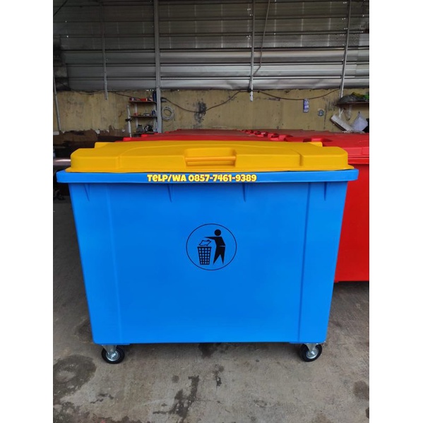 TEMPAT SAMPAH BESAR/TONG SAMPAH BESAR/BAK SAMPAH BESAR VOLUME 660 LITER KOMBINASI WARNA HITAM TUTUP KUNING