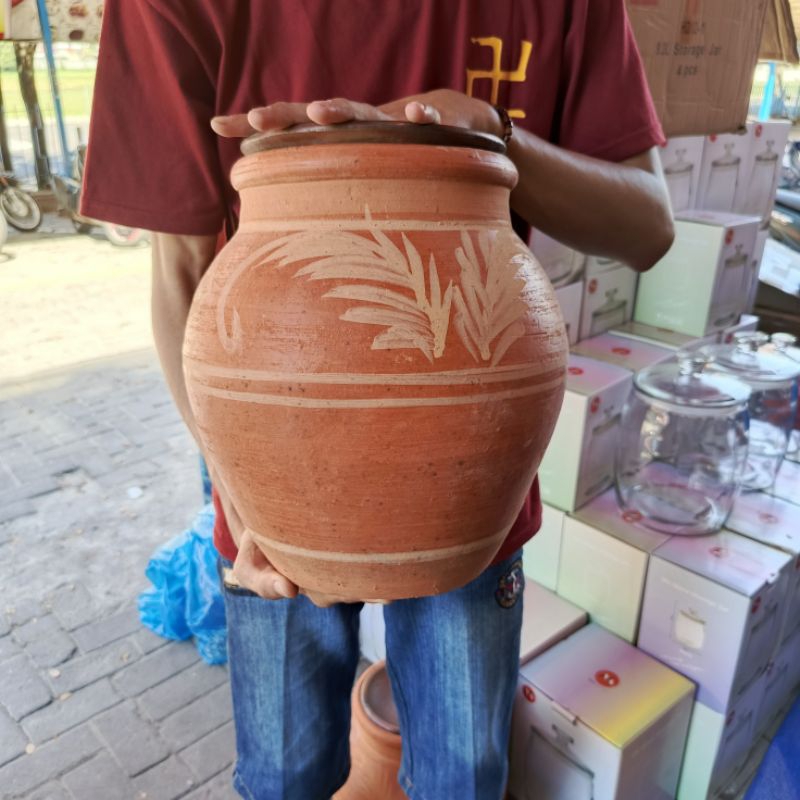 TEMPAYAN GENTONG GERABAH+TUTUP tanah liat, coklat natural 35x40cm 25L air,beras, tepung