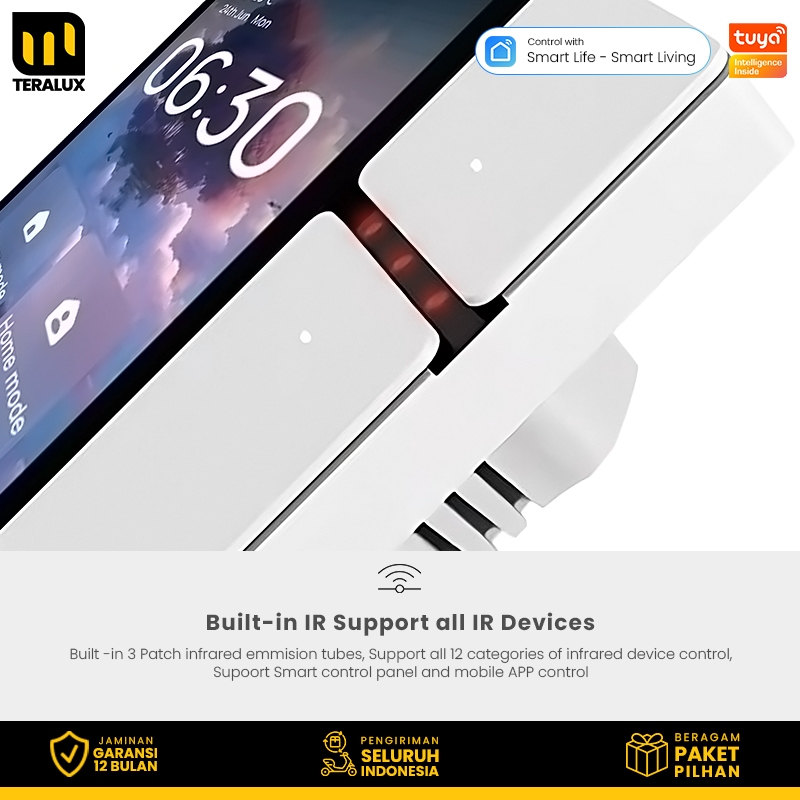 TERALUX Smart Panel 3.5 inch Bluetooth Gateway With 3 Gang Switch Built In IR Remote Tuya Smartlife