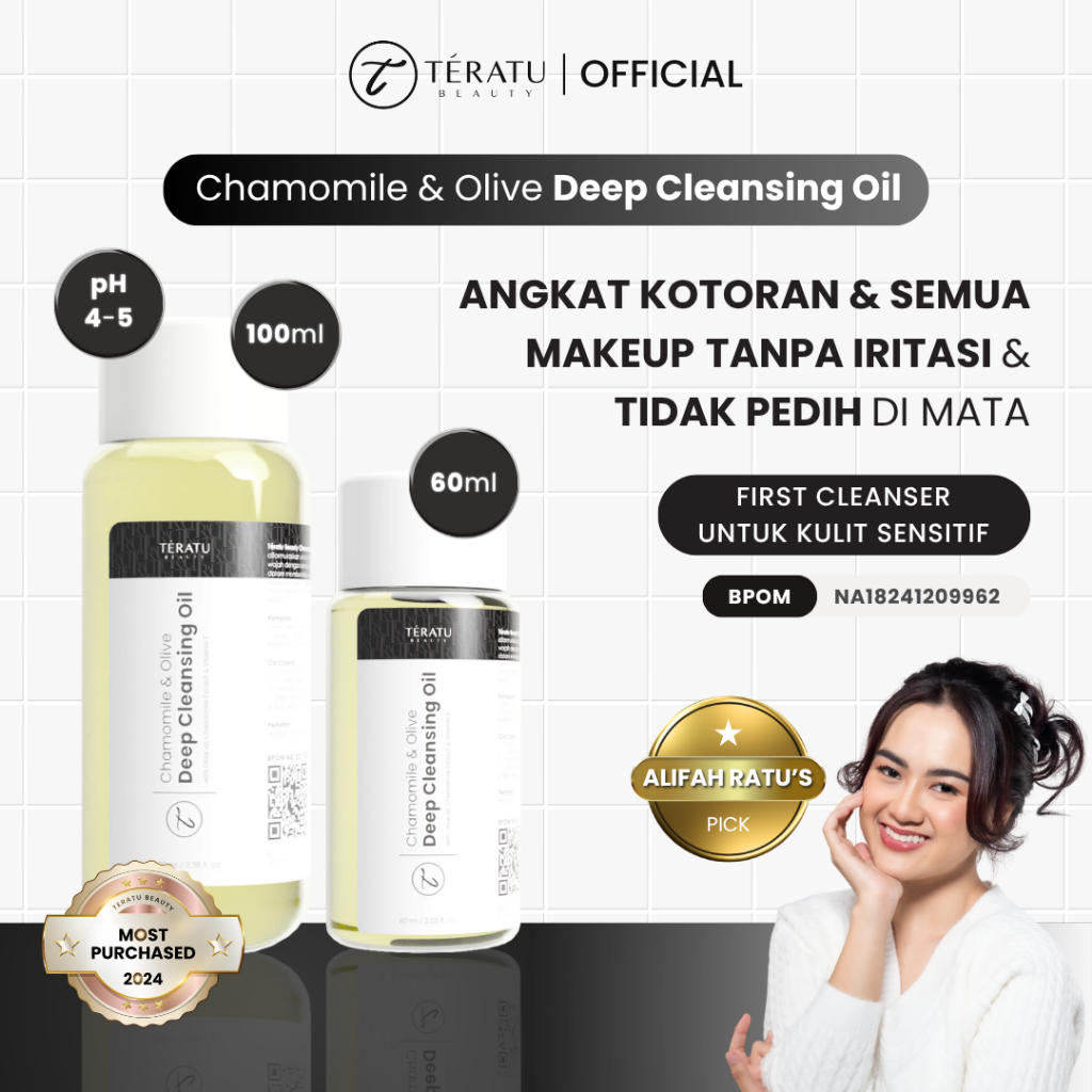 TERATU BEAUTY Chamomile & Olive Deep Cleansing Oil (Self Emulsified Oil to Milk formula ANGKAT KOTORAN DAN SEMUA MAKEUP tanpa iritasi dan tidak perih di mata)