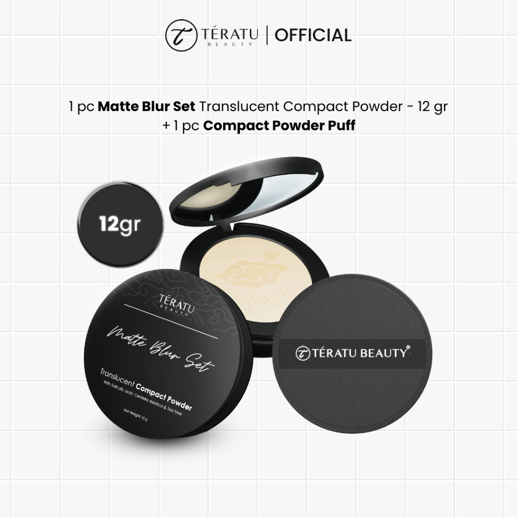 TERATU BEAUTY Matte Blur Set Translucent Compact Powder - 12 gr (Bedak Padat Tahan Minyak, Blurin Pori, & Acne Care Infused)
