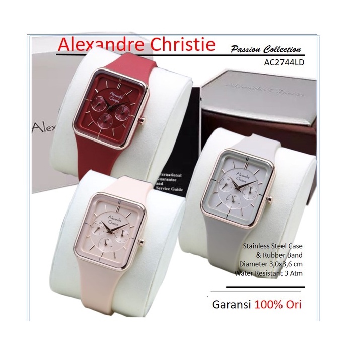 TERBARU JAM TANGAN ALEXANDER CHRISTIE WANITA ORIGINAL TALI RUBBER AC 2744 ALEXANDRE CRISTIE CEWEK 100% ORI TALI KARET CRISTIE CRISTY CWEK MODEL KOTAK