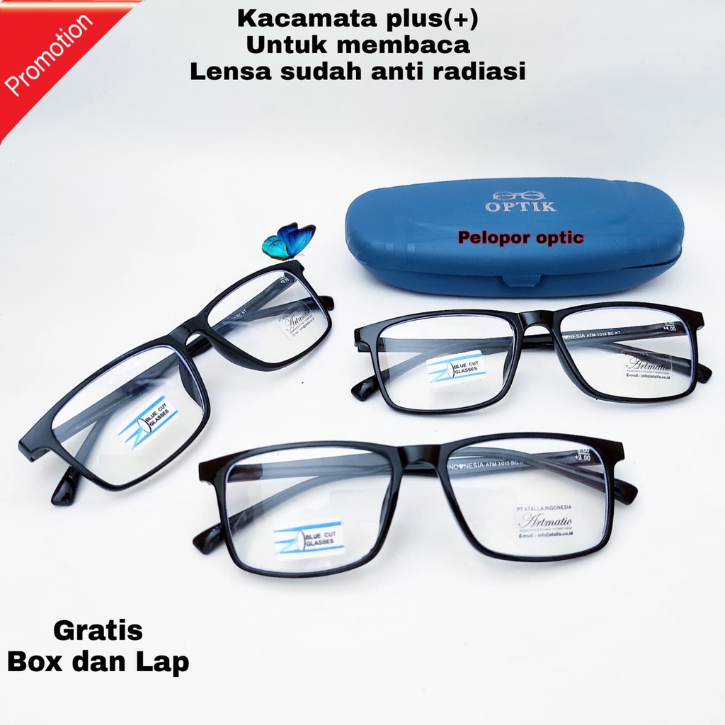 TERBARU Kacamata plus lensa anti blueray light super fokus Ukuran plus +0.50 s/d +4.00 UNISEX(Untuk pria dan wanita) BONUS BOX DAN LAP CLEANER LENSA