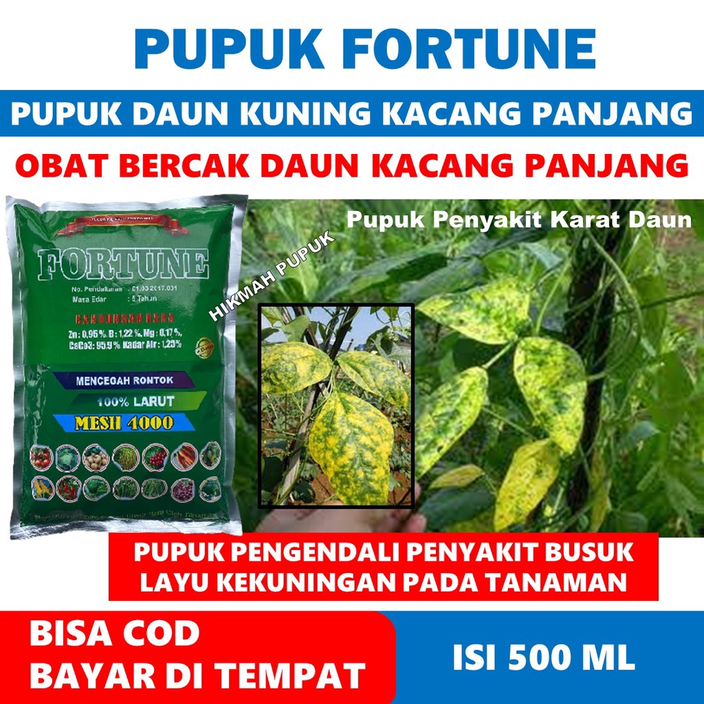 TERLARIS FORTUNE isi 1KG OBAT BERCAK DAUN KACANG PANJANG, TIMUN, LABU SIAM, KACANG-KACANGAN DAN SEMUA TANAMAN LAINNYA Pupuk Bercak Daun Kacang Panjang Paling Bagus Dan Mujarab, Mengatasi Hama Penyakit Bercak Daun Kacang Panjang