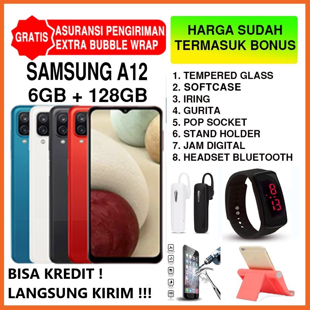 TERLARIS LANGSUNG KIRIM DP 0% !!! Samsung Galaxy A12 RAM 6 128 GARANSI FULL SET FREE KARTU PERDANA (2ND)