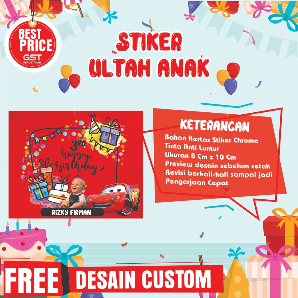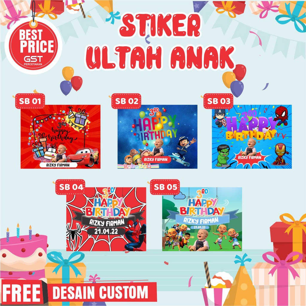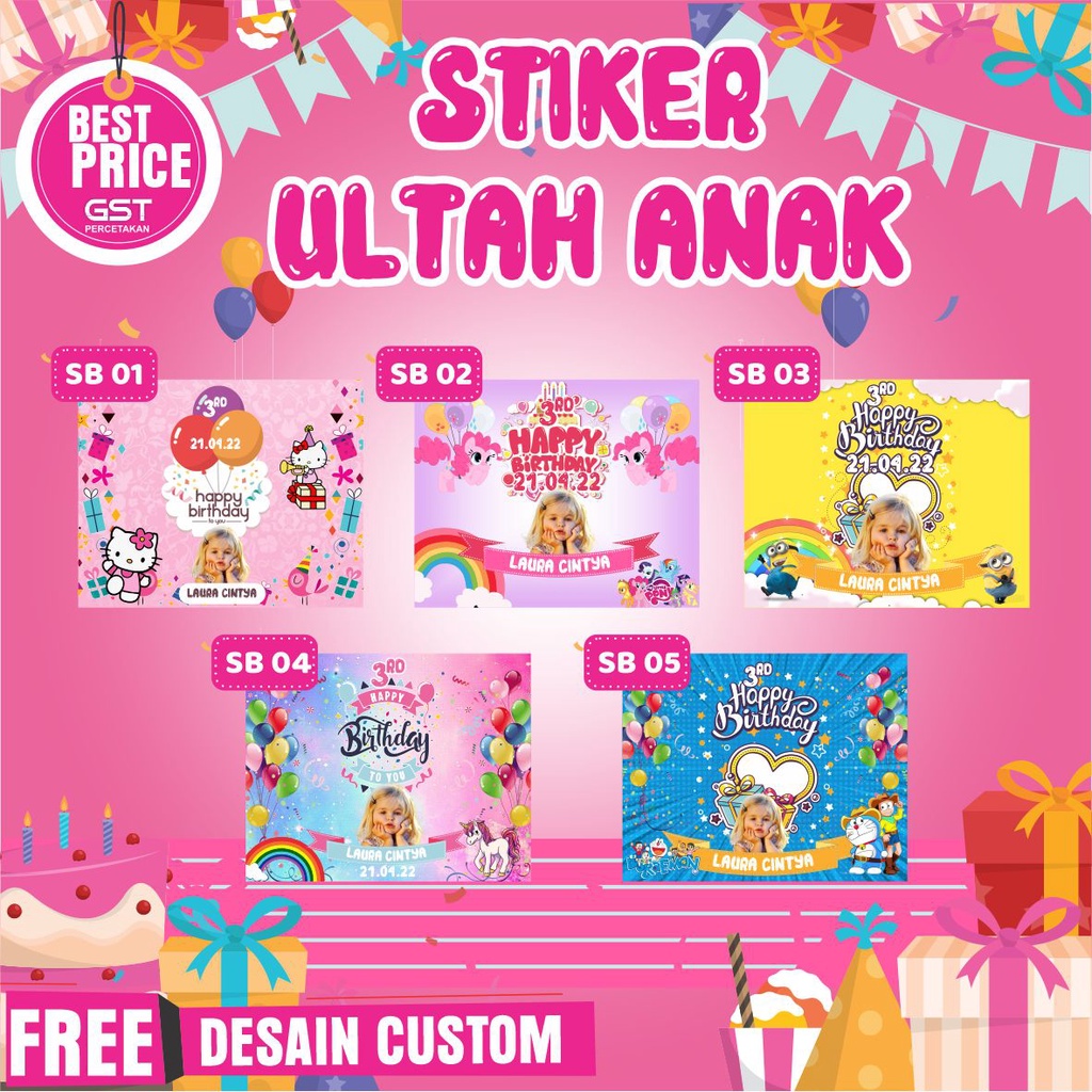 TERLARIS STIKER ULANG TAHUN ANAK/STICKER ULANG TAHUN ANAK CUSTOM/TASYAKURAN UNTUK KOTAK NASI/KUE/BENTO/MIKA/BOX NASI