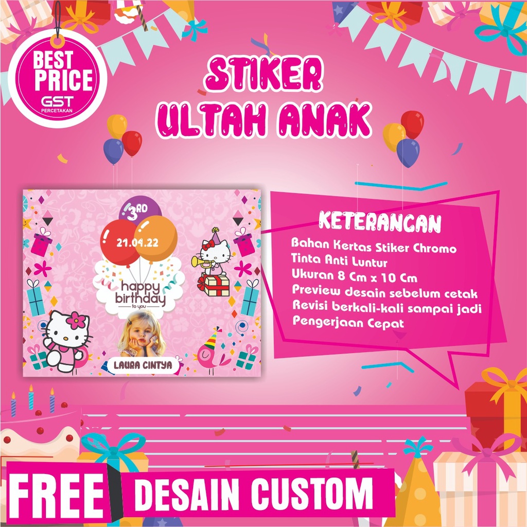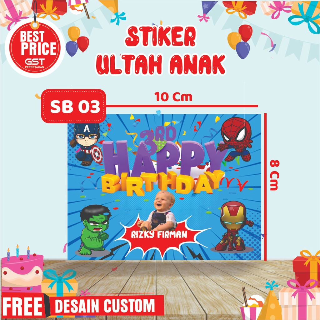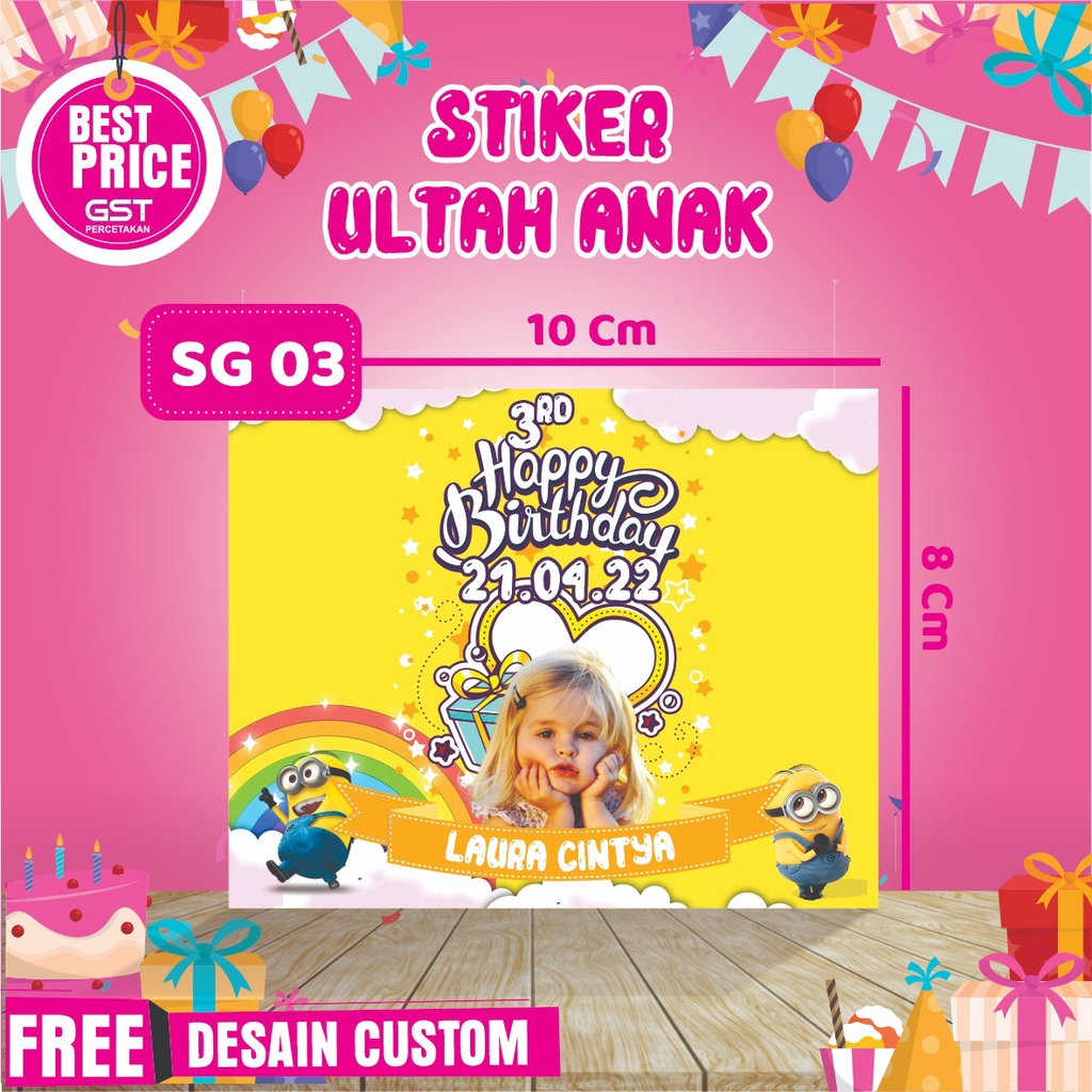 TERLARIS STIKER ULANG TAHUN ANAK/STICKER ULANG TAHUN ANAK CUSTOM/TASYAKURAN UNTUK KOTAK NASI/KUE/BENTO/MIKA/BOX NASI