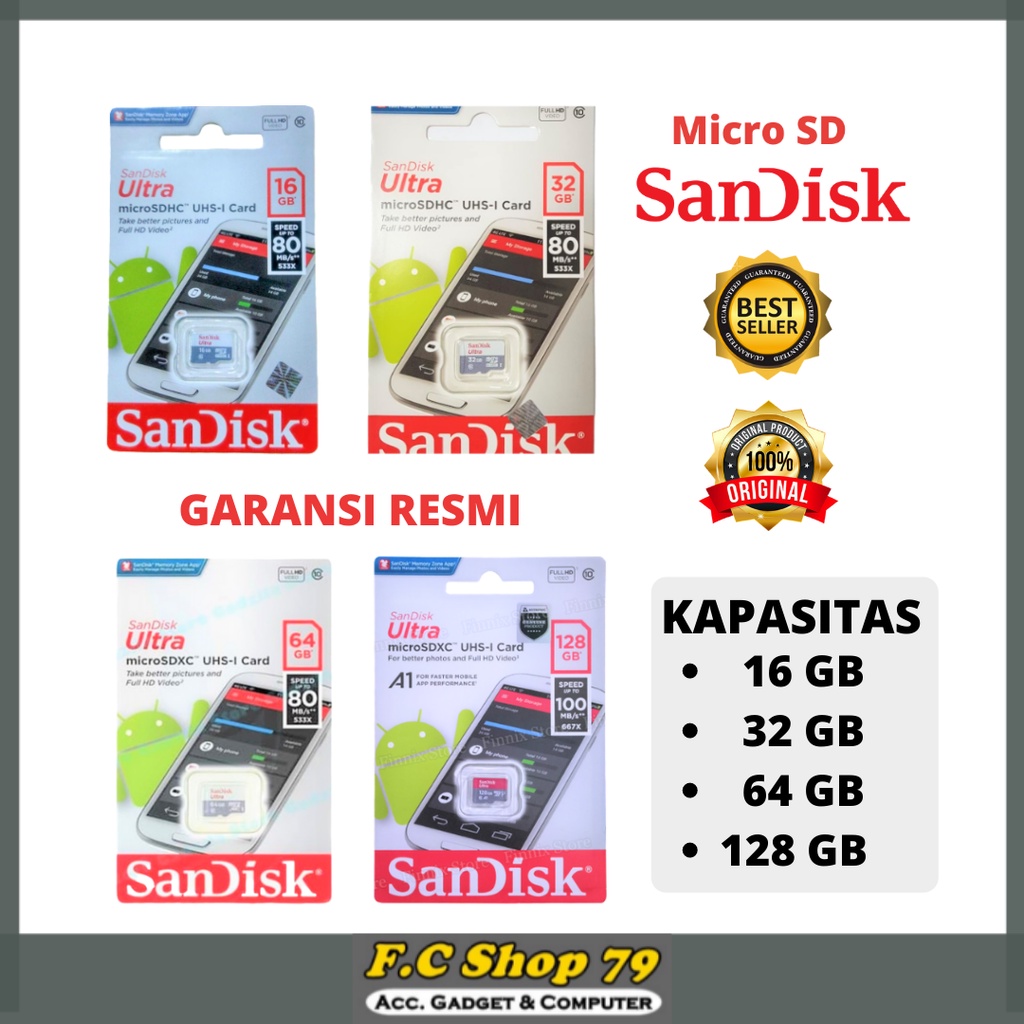 TERMURAH!! MICROSD MICRO SD CARD "SANDISK" ORIGINAL Kartu Memory Memori Buat Handphone HP CCTV 16 32 64 128 GB Murah