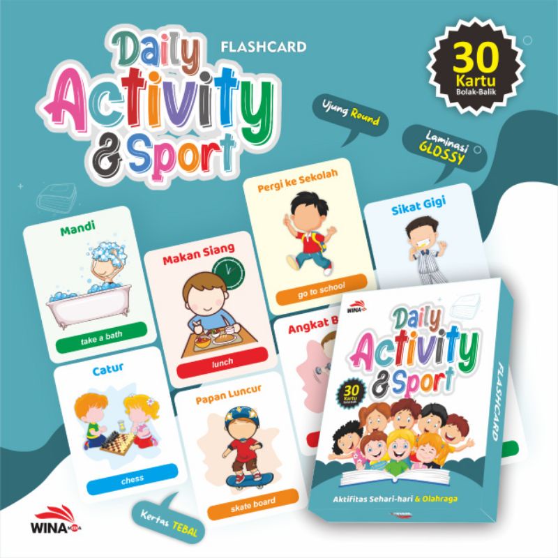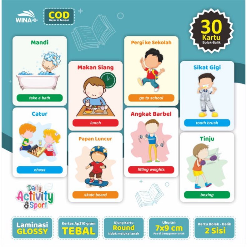 TERMURAH! Kartu Edukasi Anak - Flashcard DAILY ACTIVITY & SPORT Bolak Balik Laminasi GLOSSY