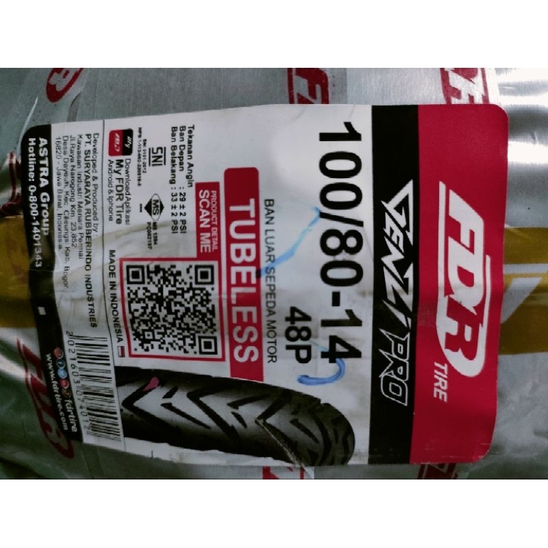 TERMURAH (PRODUKSI 2024) BAN TUBELESS FDR GENZI/GENZI PRO RING 14 (80/80.14)(90/80.14)(100/80.14) FREE PENTIL 100% ORIGINAL