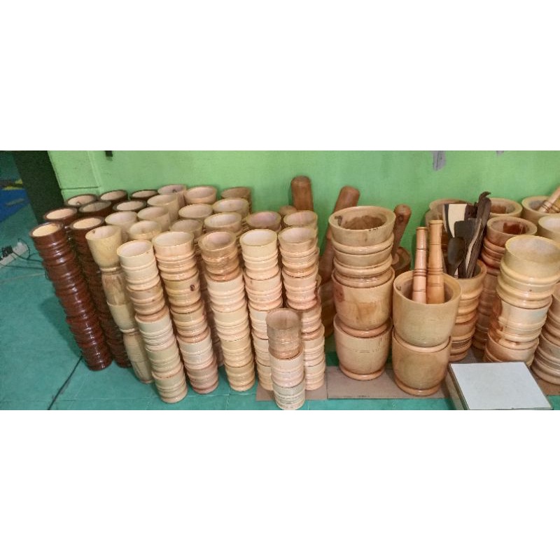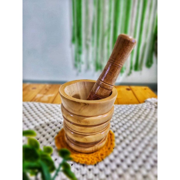 TERMURAH SET LUMPANG KAYU KECIL MODEL UKIR + ALU / Tumbukan Kayu Ulekan Kayu Peralatan Masak Alat Dapur
