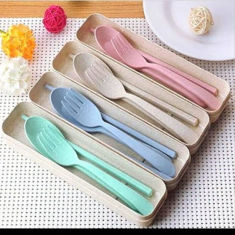 TERMURAH Sendok Set Jerami Alat Makan Souvenir Korean Sumpit Travel Gandum Unik Kado Lunch Box