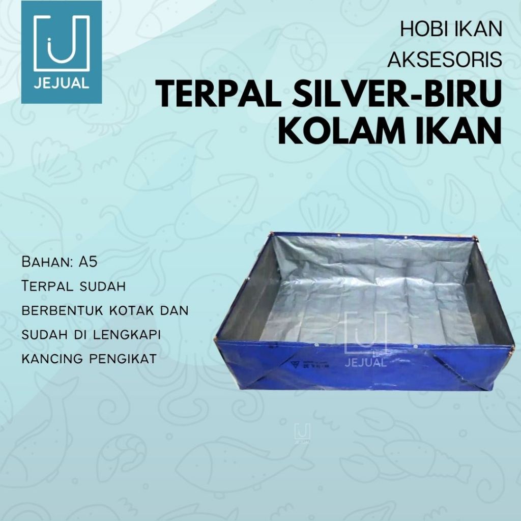 TERPAL KOLAM IKAN Kotak A5 Biru Silver Berbagai Ukuran/Persegi Tinggi 50 cm