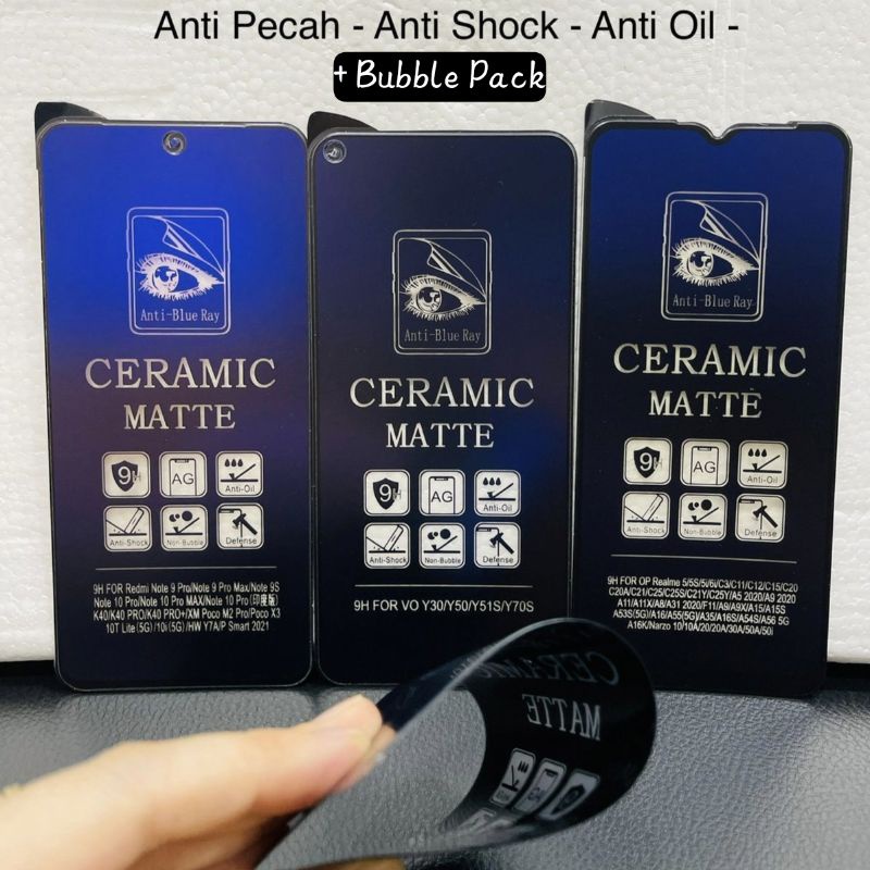 TG Ceramic Blue Redmi A1, A2, A1+, 9, 9A, 9C, 10A, 9i, 10 5G, Poco M3, Poco M5, Note 8 Pro Tempered Glass Anti Pecah Anti Radiasi