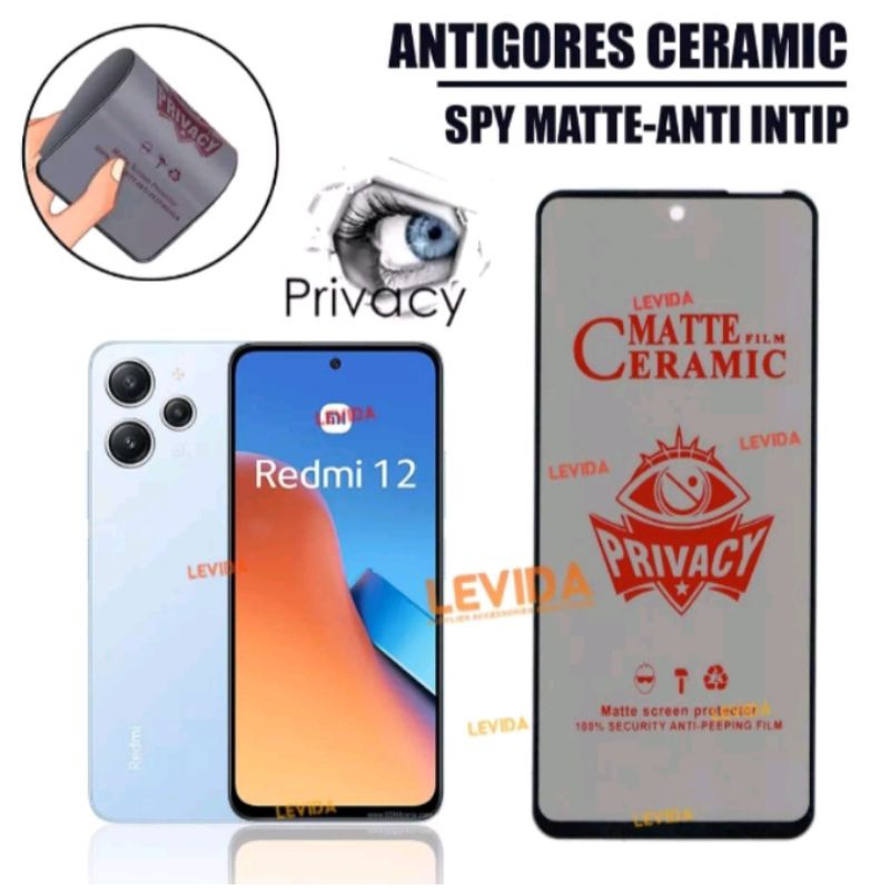 TG Tempered Glass Ceramic Spy Redmi 12 4G 2023 Anti Gores Matte Privacy Anti SPY bahan full ceramic tahan lama