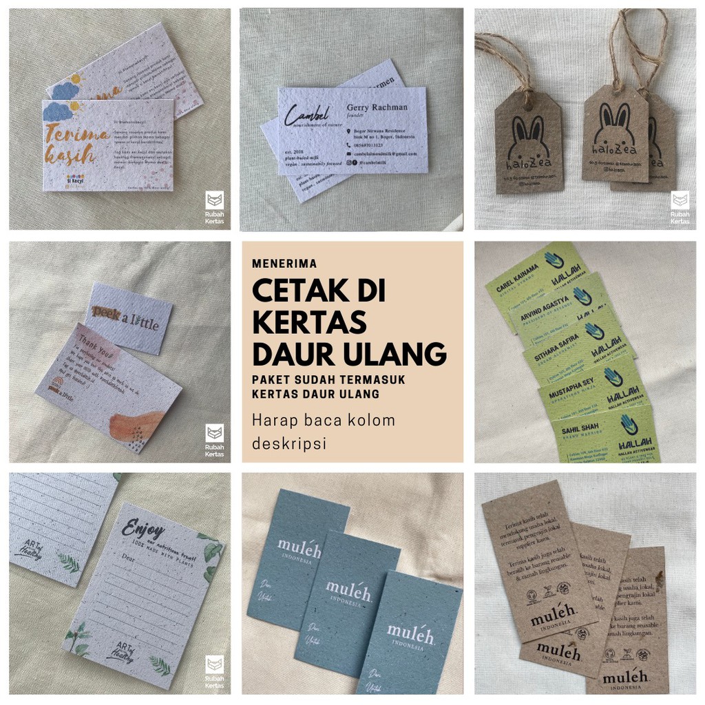 Thank You Card Hang Tag Kartu Nama Costum Cetak Di Kertas Daur Ulang Per Set
