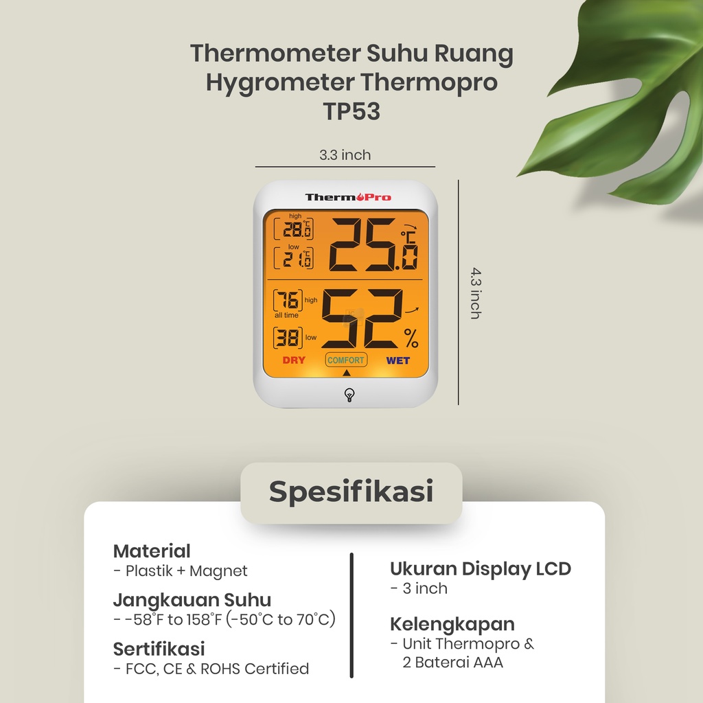 THERMOPRO Thermometer Hygrometer Humidity Termometer Suhu Ruang Tp53
