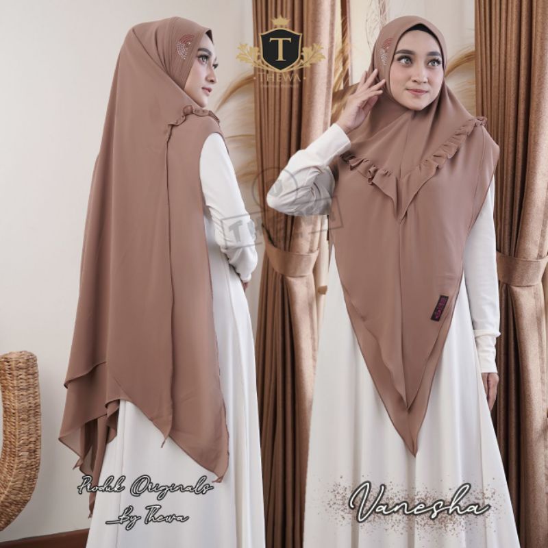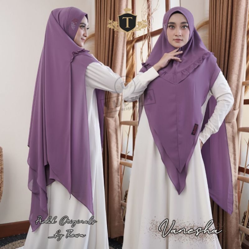 THEWA - Hijab Khimar Vanessa Rempel Jumbo 2 Layer Kerudung Ceruty Babydoll