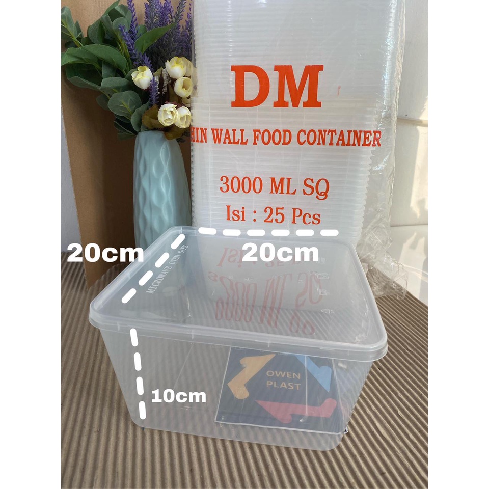 THINWALL KOTAK/KOTAK MAKAN PLASTIK DM 1000ML 1500ML 2000ML 3000ML ISI 25 SET WADAH DAN TUTUP TERMURAH DAN BERKUALITAS
