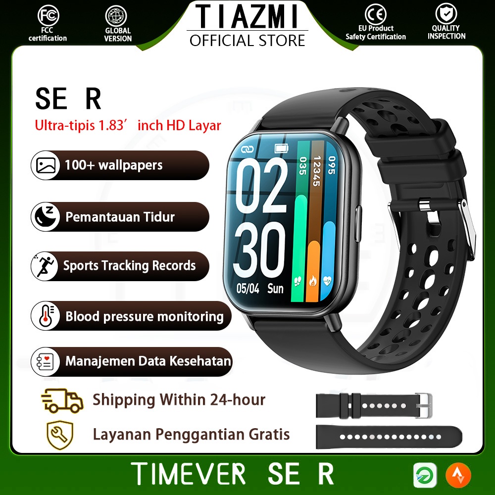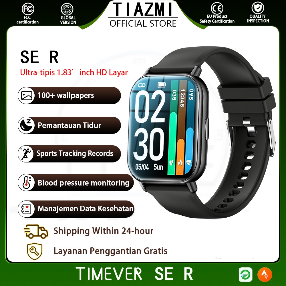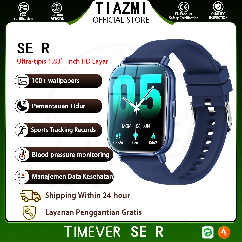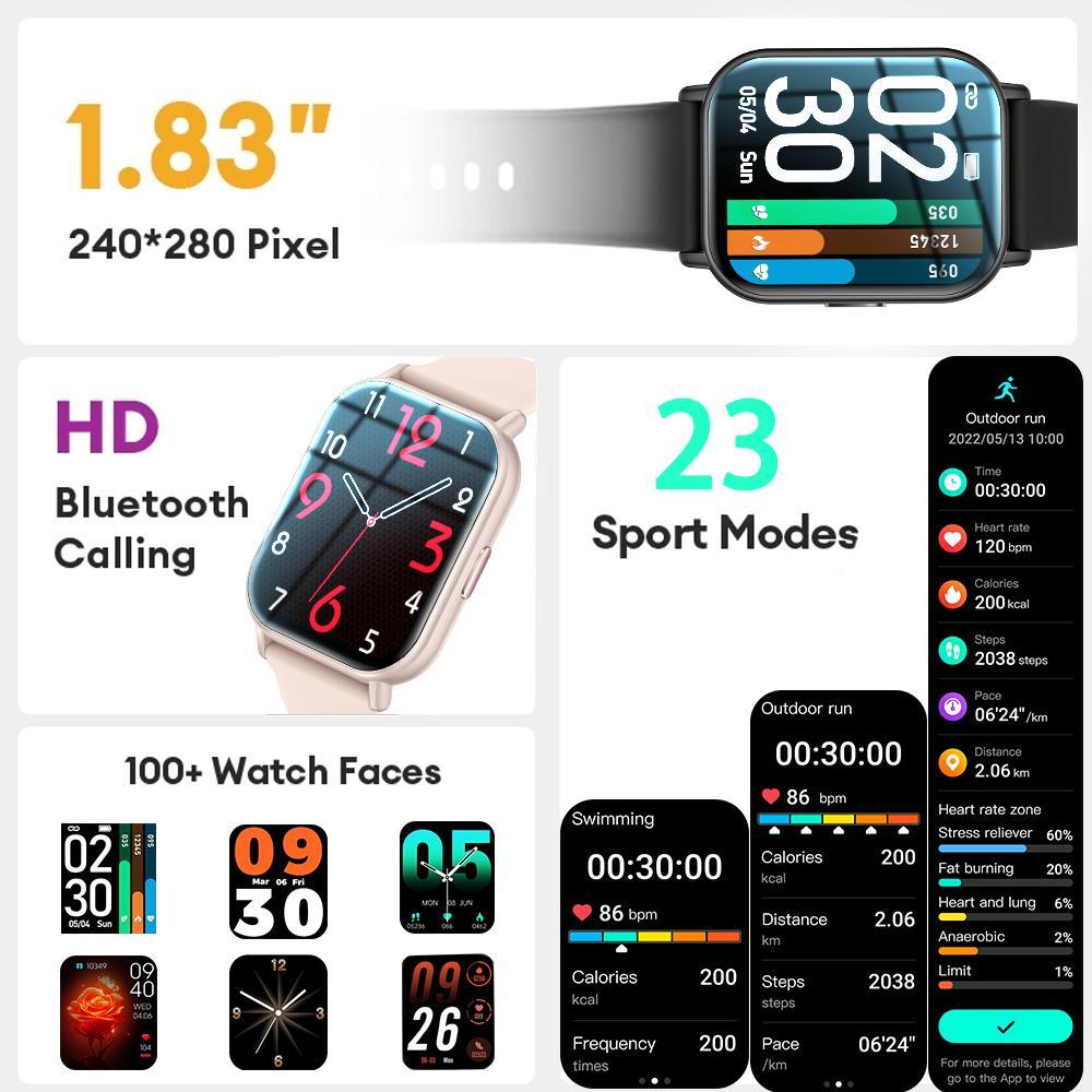 TIMEVER SE R SmartWatch IP68 Waterproof 1.83“ IPS Screen Bluetooth Call Running Pace Custom Wallpaper Smartwatch