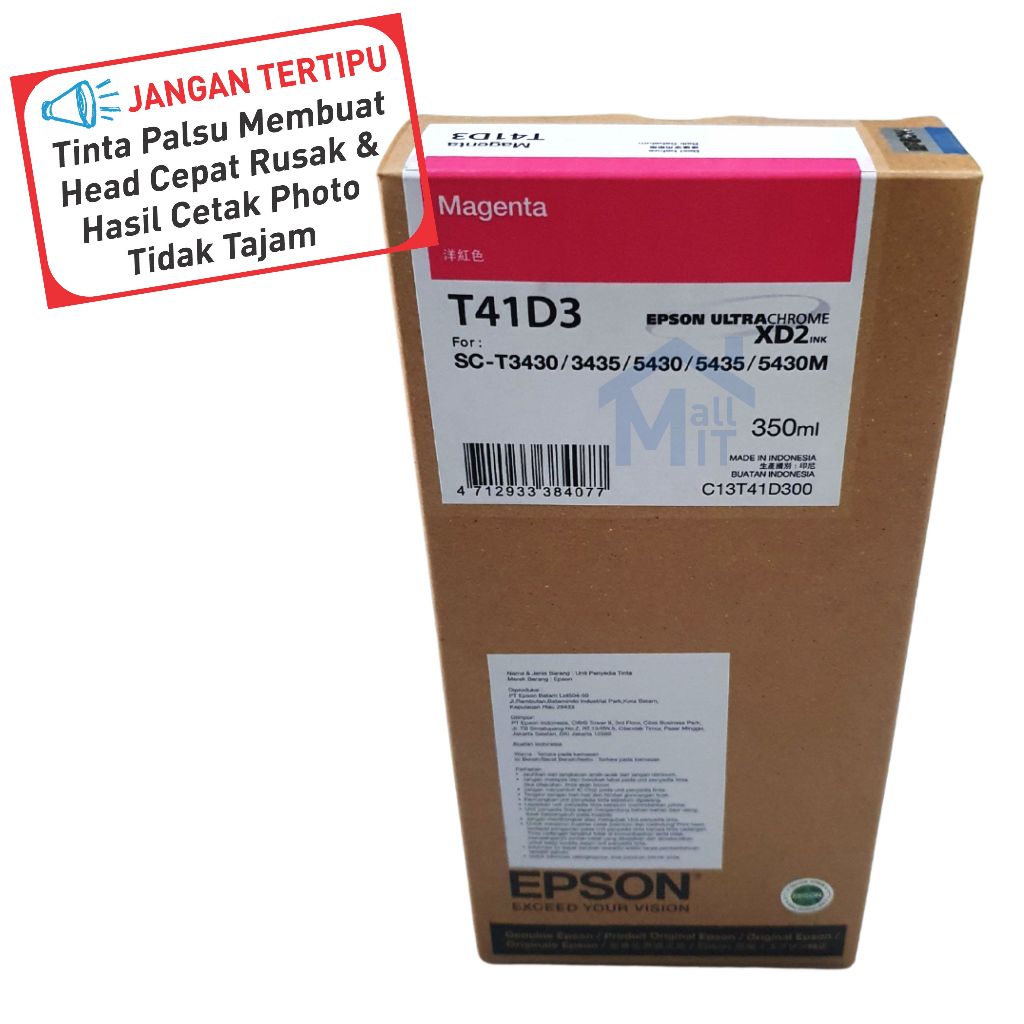 MALLIT EPSON Tinta Catridge Epson T41D T-41D T 41D Untuk Printer T5430 T3430 Original
