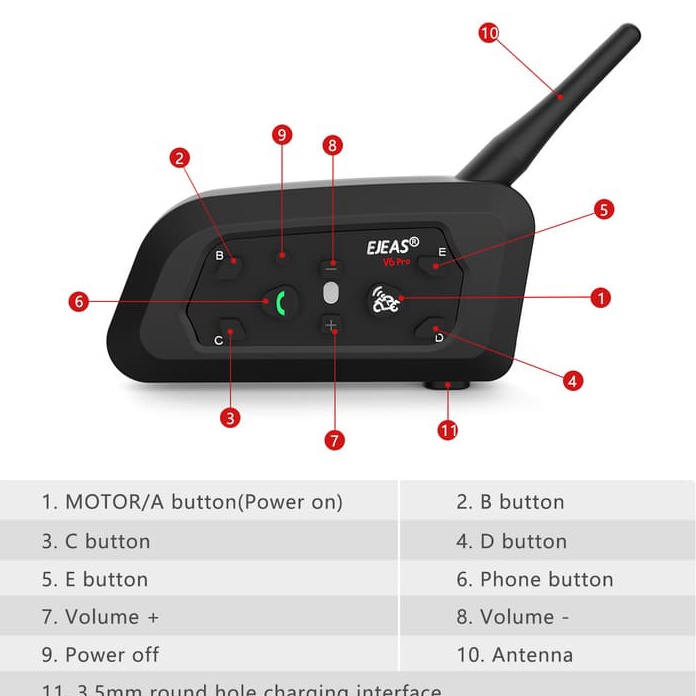 TIPE VZZ507 EJEAS V6 PRO Intercom Helm 6 Riders Bluetooth Interkom Helmet Vnetphone
