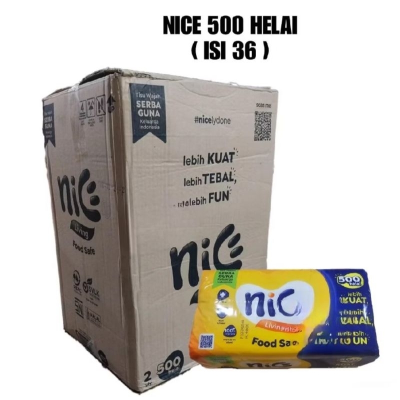 TISSUE NICE 500 S 1 DUS ISI 36 BKS /TISU NICE 250/500 sheet 1 KARTON 2 PLY LOVELY JOY kemasan baru