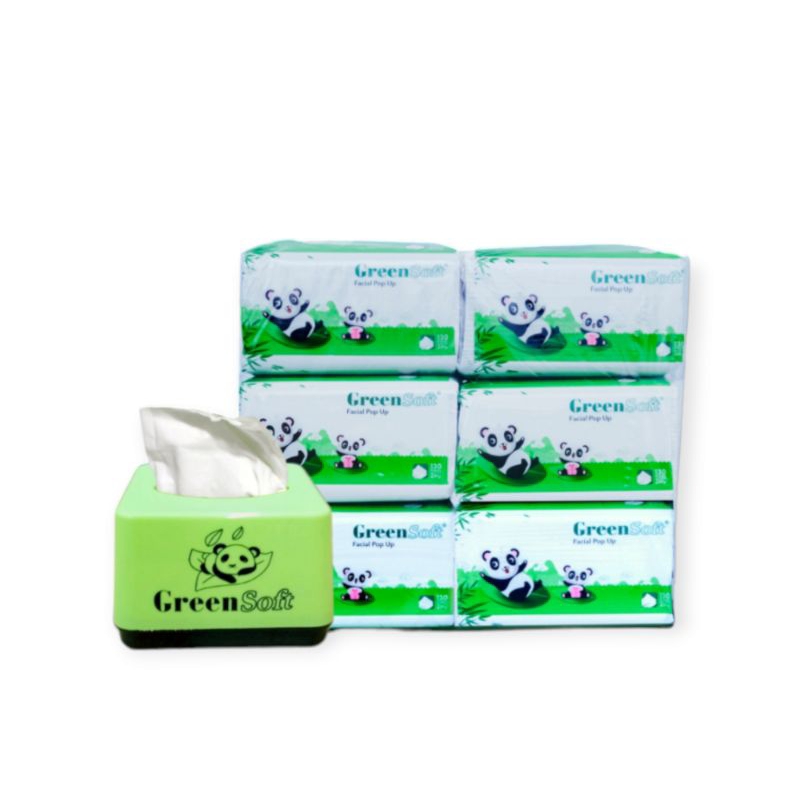TISU PANDA GREEN SOFT FACIAL POP UP ISI 6 + FREE TISU BOX