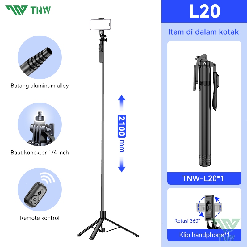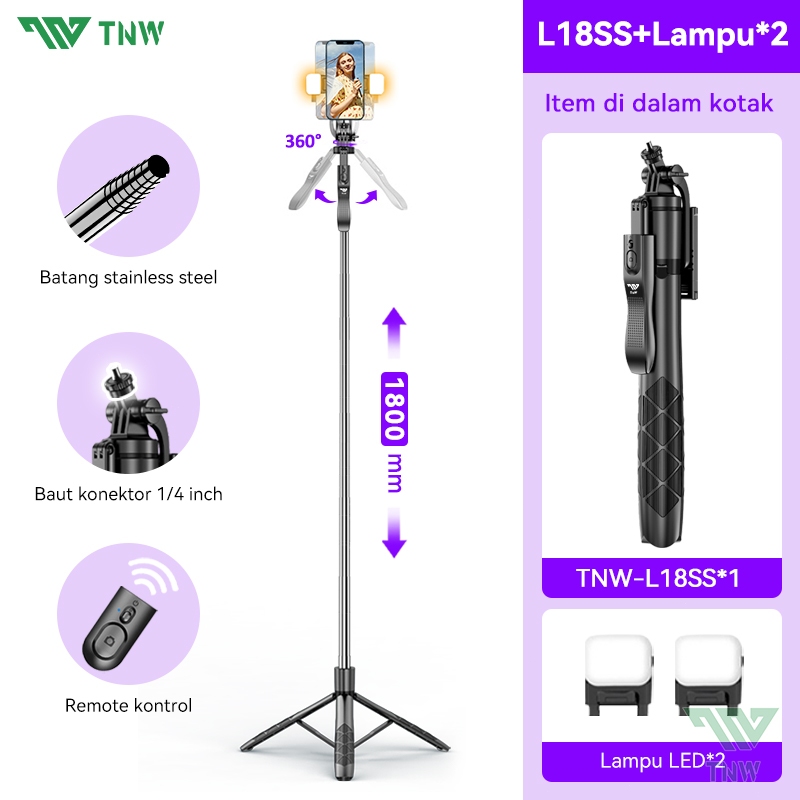 TNW L16 Tongsis Tripod Bluetooth Selfie Stick Remote Tripod HP Kamera DSLR Tongsis 1800MM dengan 1/4 Adaptor