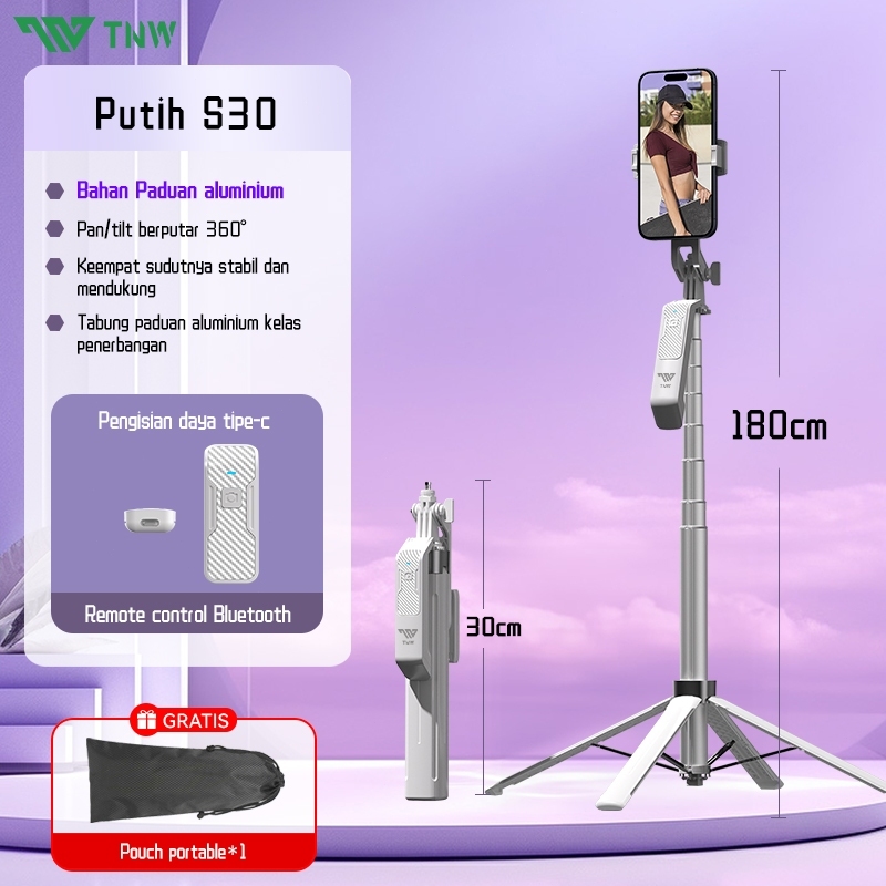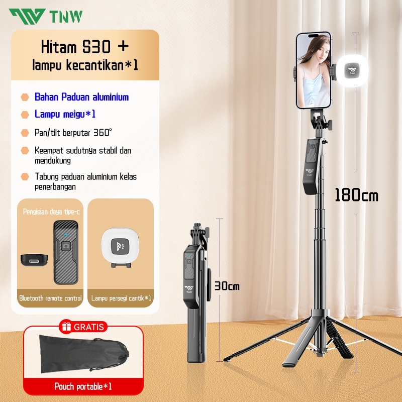 TNW S30 Bluetooth Tongsis Tripod 4 In 1 Selfie Stick Fill Light 1.8M Tongsis Tripod Remote Tongsis Gimbal Untuk HP Kamera