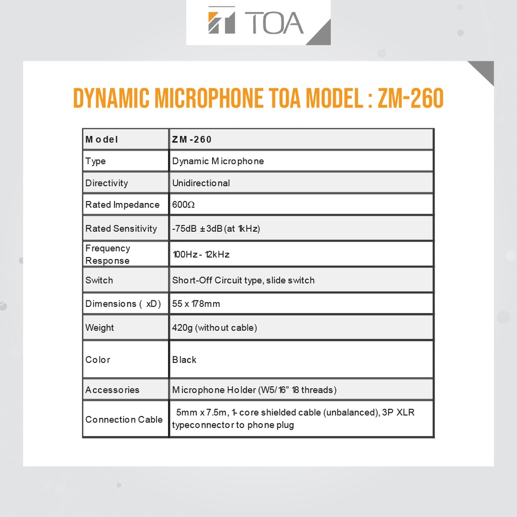 TOA Dynamic Microphone Model ZM260 - Garansi Resmi