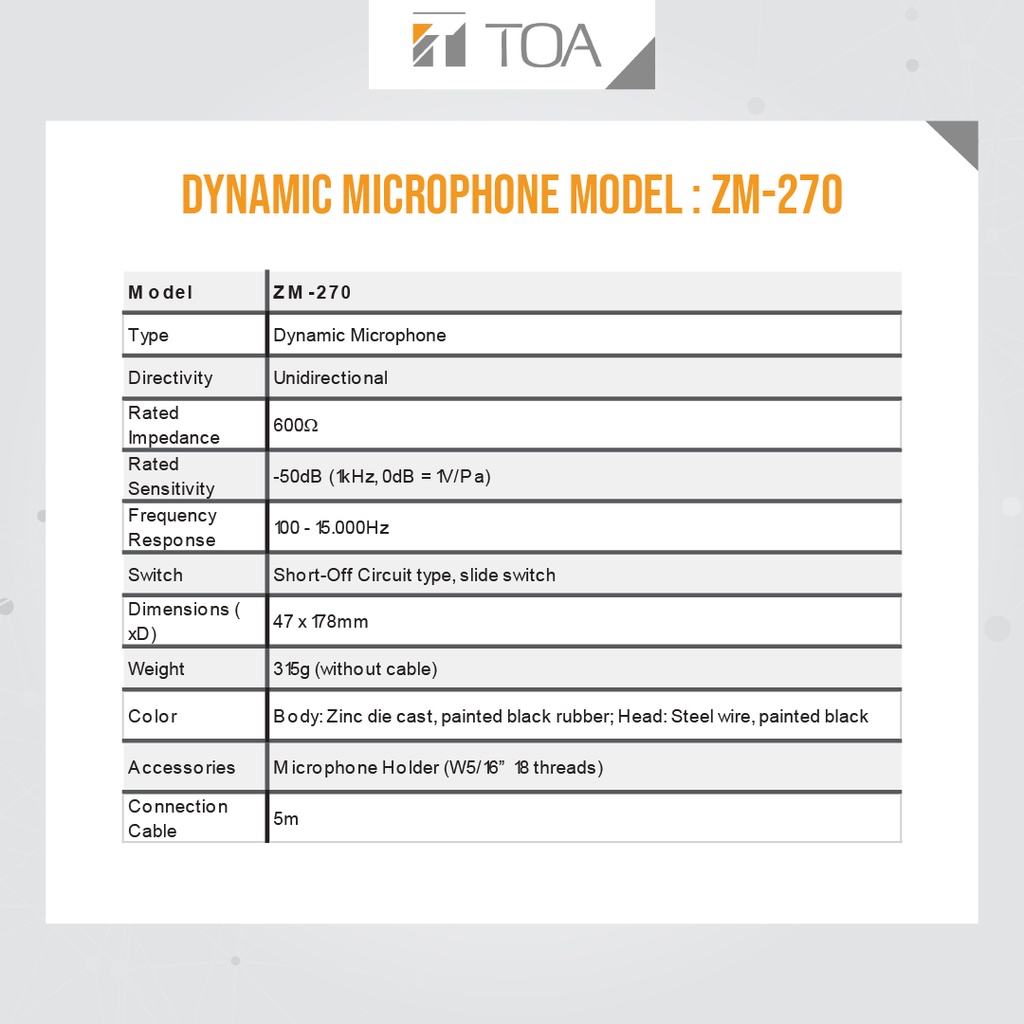 TOA Dynamic Microphone Model ZM270 - Garansi Resmi