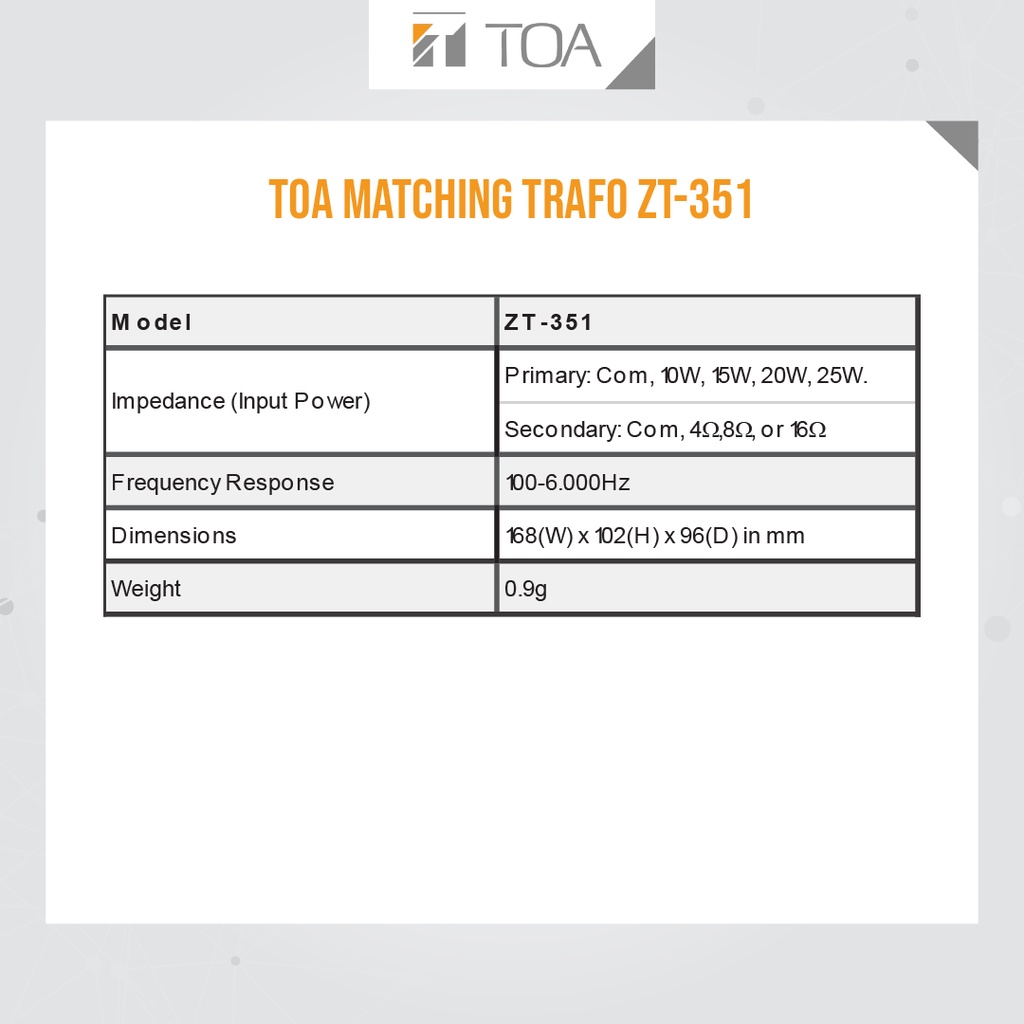 TOA Matching Trafo Model ZT351 - Garansi Resmi