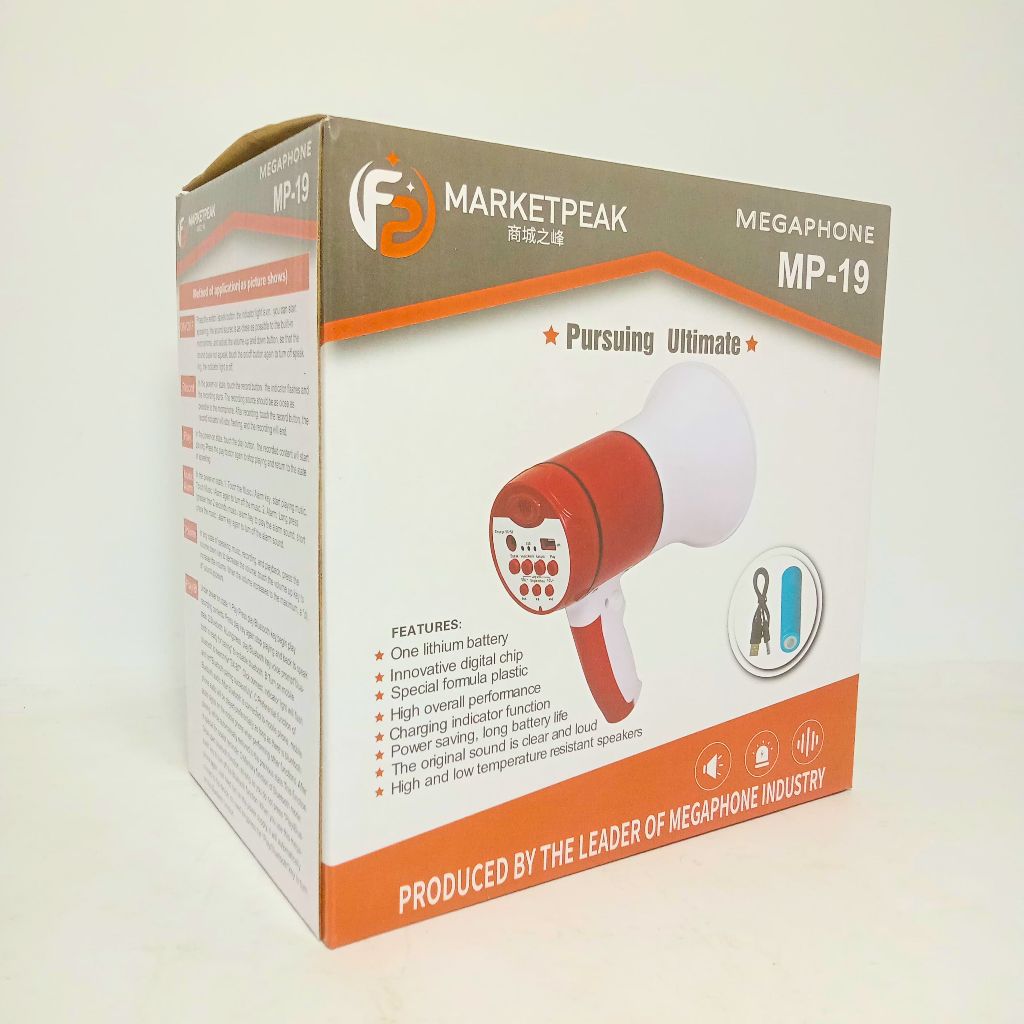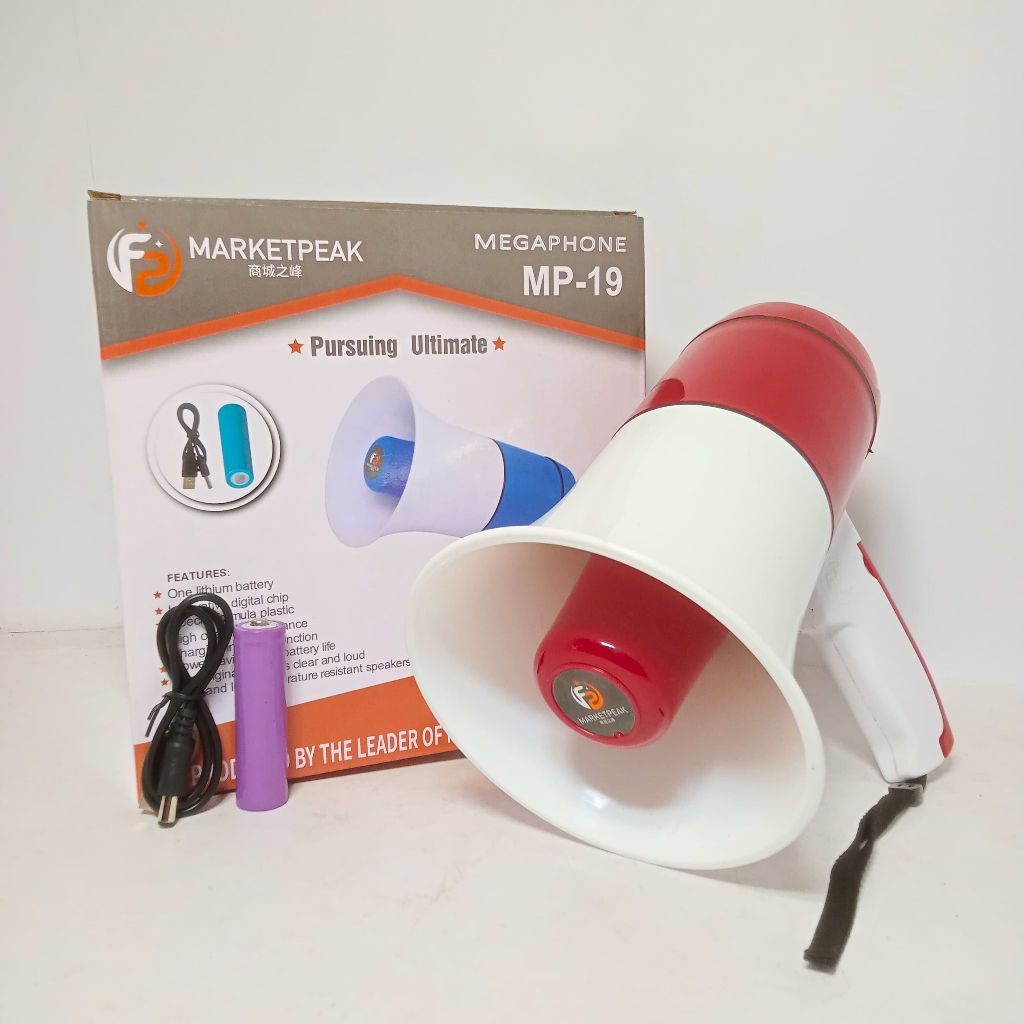 TOA Megaphone MARKETPEAK MP-19 - Pengeras Suara Bluetooth MARKETPEAK MP19 - Megaphone Terlaris - Toa Megaphone Multifungsi - Pengeras Suara Bisa Untuk Merekam Suara Dan Bisa Musik Menggunakan Daya Batrei