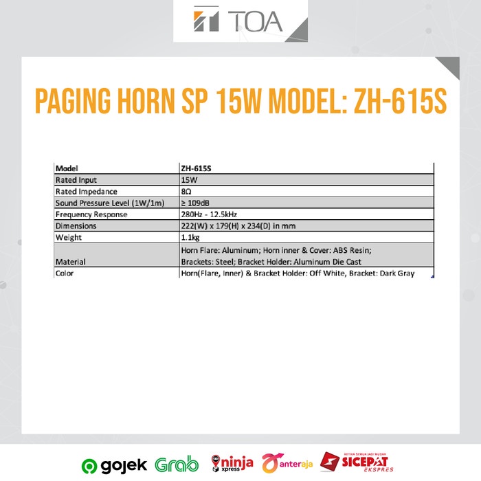 TOA Paging Horn Model ZH-615S 15W - Garansi Resmi