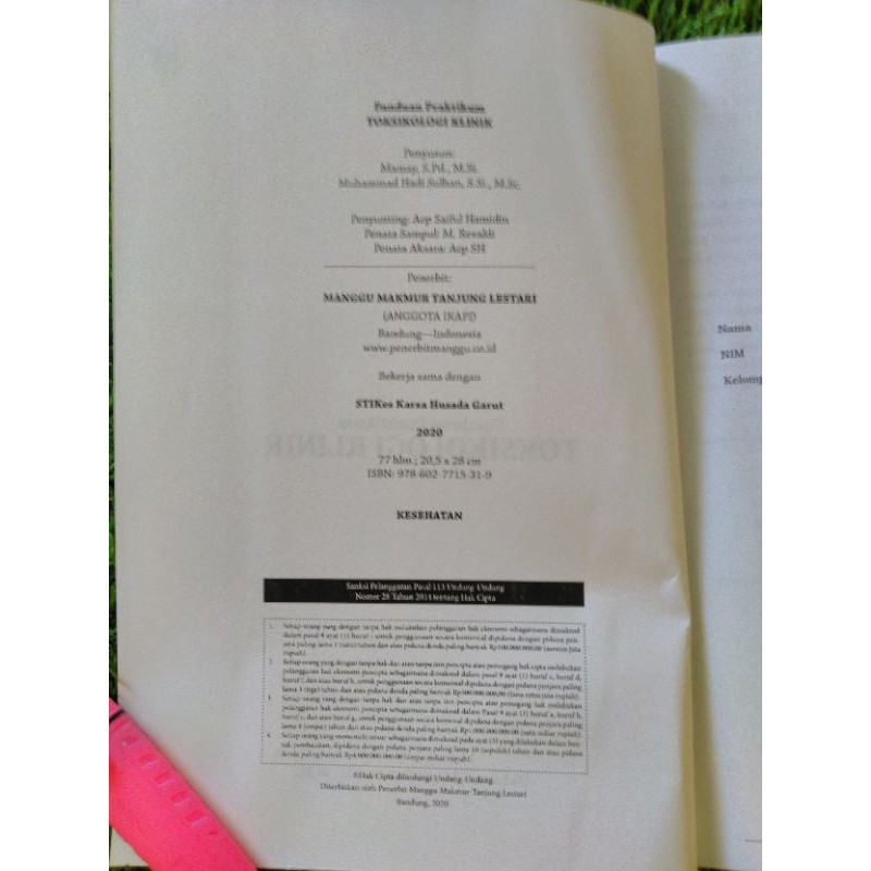 TOKSIKOLOGI KLINIK / Praktikum Pemeriksaan Narkotika, Alkohol, Arsen, Timbal, Sianida dan CoHb