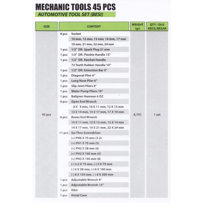 TOOL KIT AUTOMOTIVE SET 45 PCS TEKIRO (BESI) / MECHANIC TOOLS 45 PCS Tekiro Tool Set Tool Box Tekiro Kunci Tekiro Set Tool Box