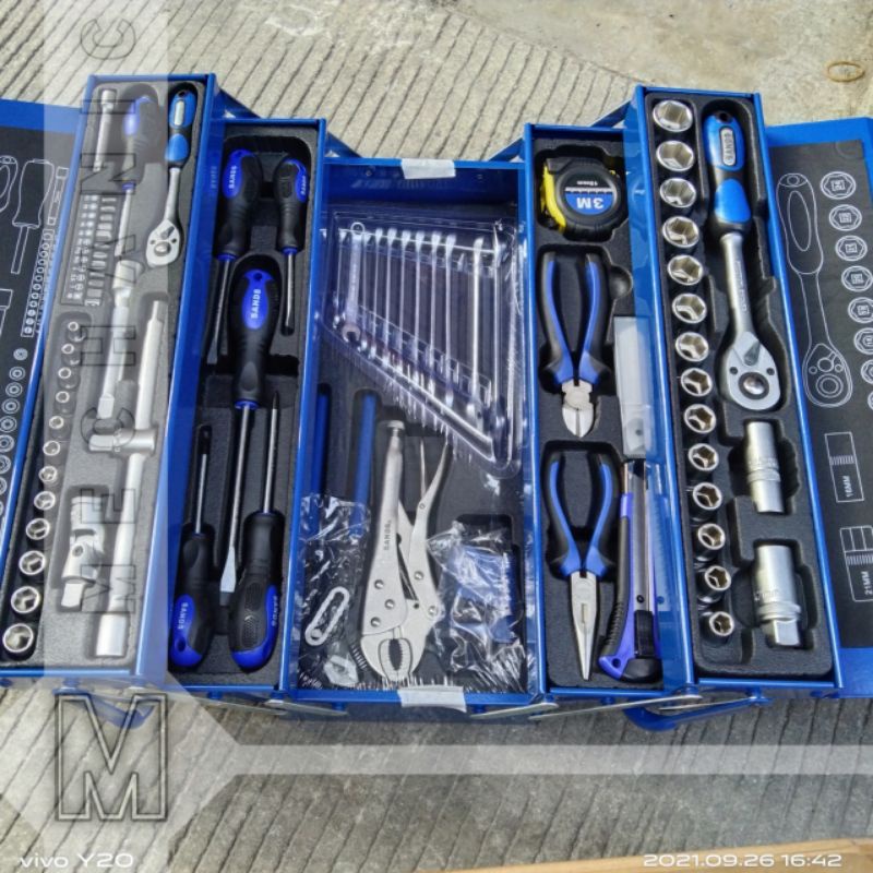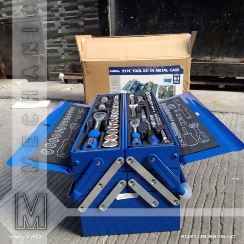 TOOLKIT 91PCS/SET IN METAL CASE SANDS TOOLBOX BIRU TOOL BOX KIT SET
