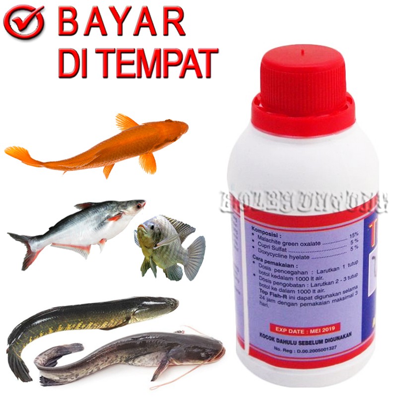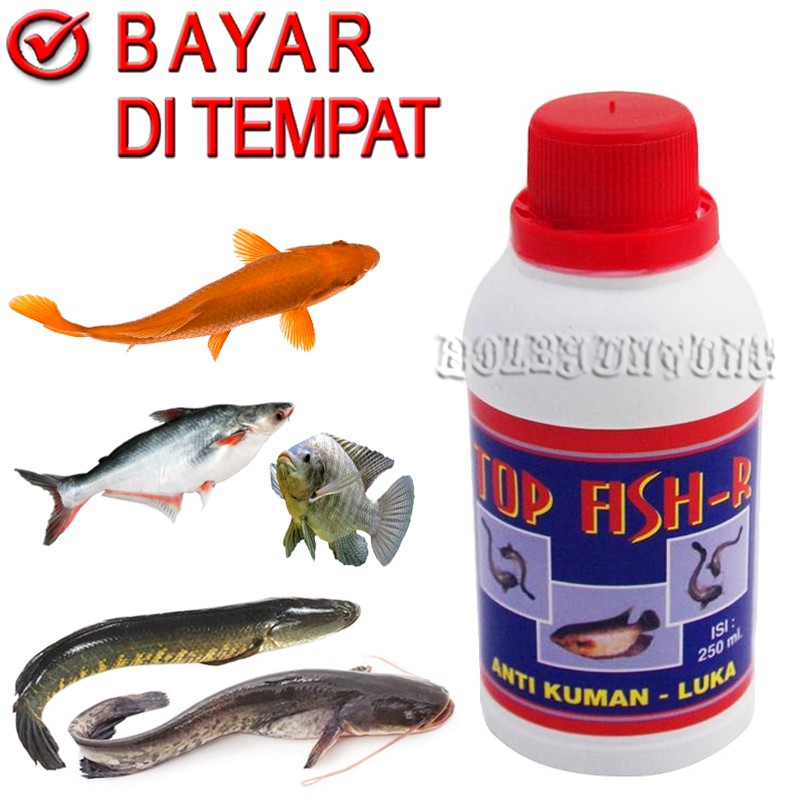 TOP FISH MERAH OBAT JAMUR IKAN ANTI BAKTERI LUKA INFEKSI MAS LELE NILA TAWES