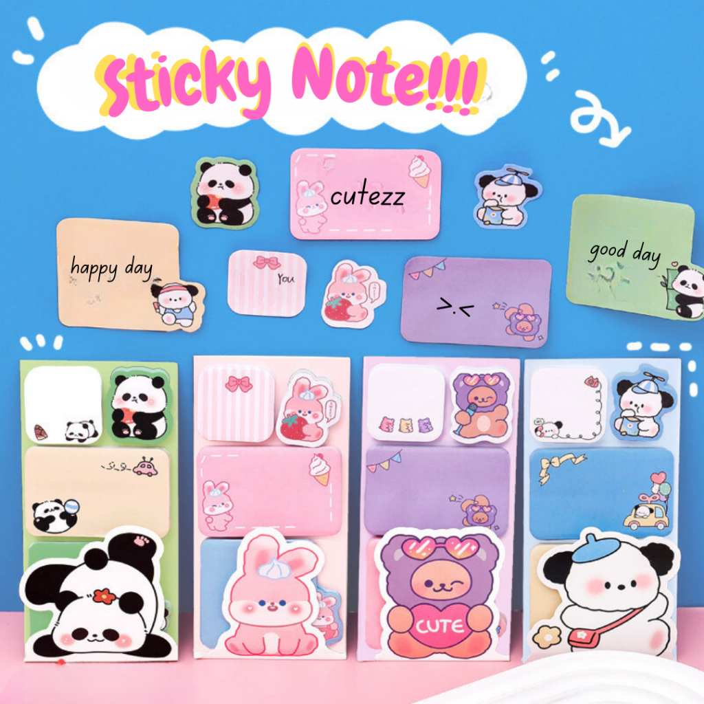 TOPER Sticky Notes 4 in 1 Total 100 Lembar Kertas Catatan Tempel Motif Kartun Animal Lucu Berwarna Estetik Aesthetic Full Color