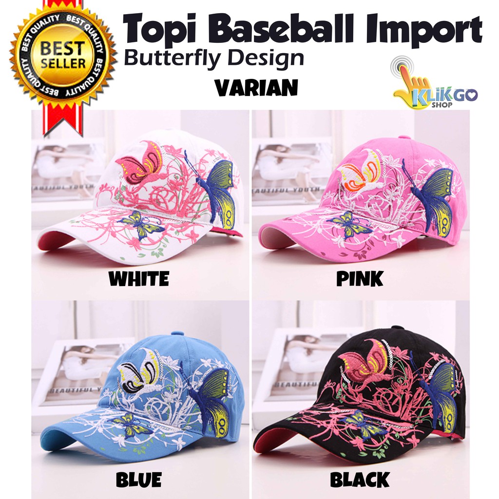 TOPI BASEBALL IMPORT BUTTERFLY BORDIR KUPU KUPU / SNAPBACK CAPS / TOPI DISTRO / TRUCKER