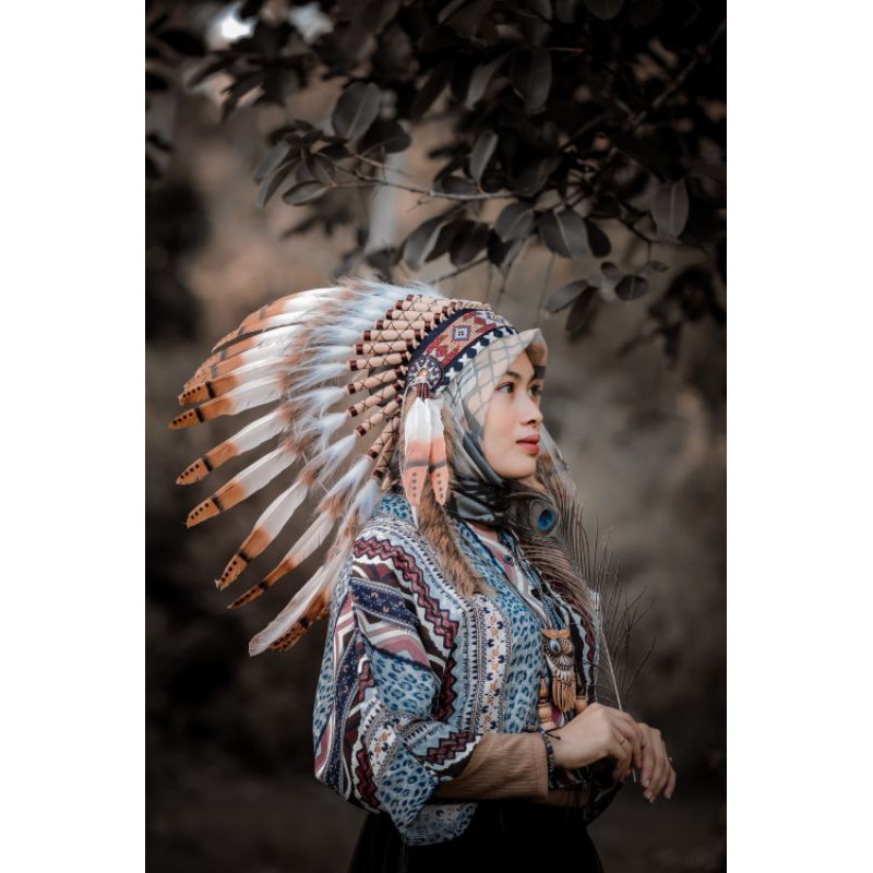 TOPI INDIAN BULU ANGSA WARNA COKLAT