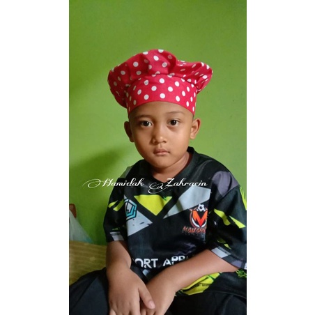 TOPI KOKI ANAK//TOPI CHEF MODERN//AKSESORIS KOKI//TOPI KULINER//TOPI DAPUR USIA 4-10THN (1PCS)
