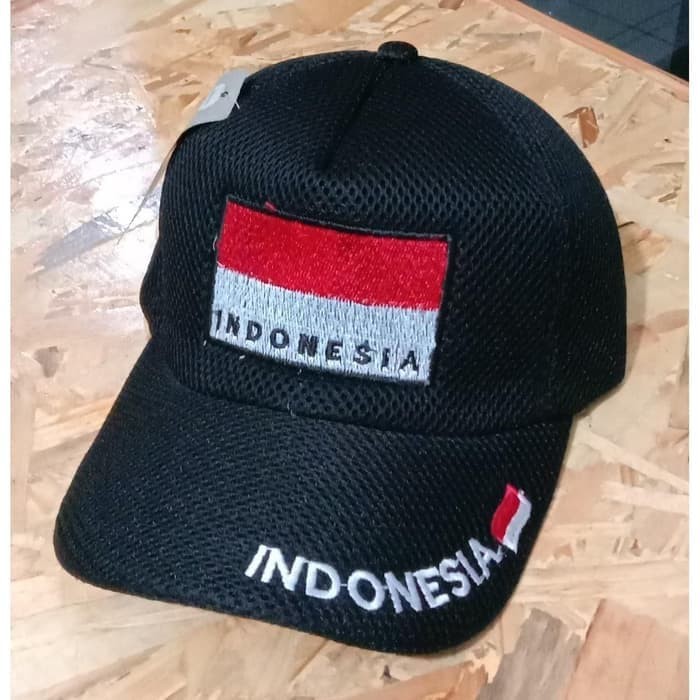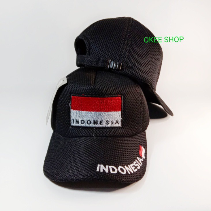 TOPI PRIA LOGO BENDERA INDONESIA / TOPI JARING LOGO BENDERA MERAH PUTIH / TOPI JALA LOGO BORDIR