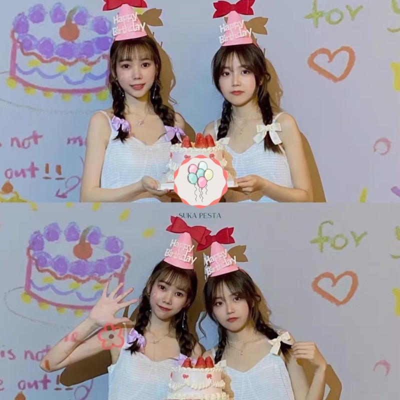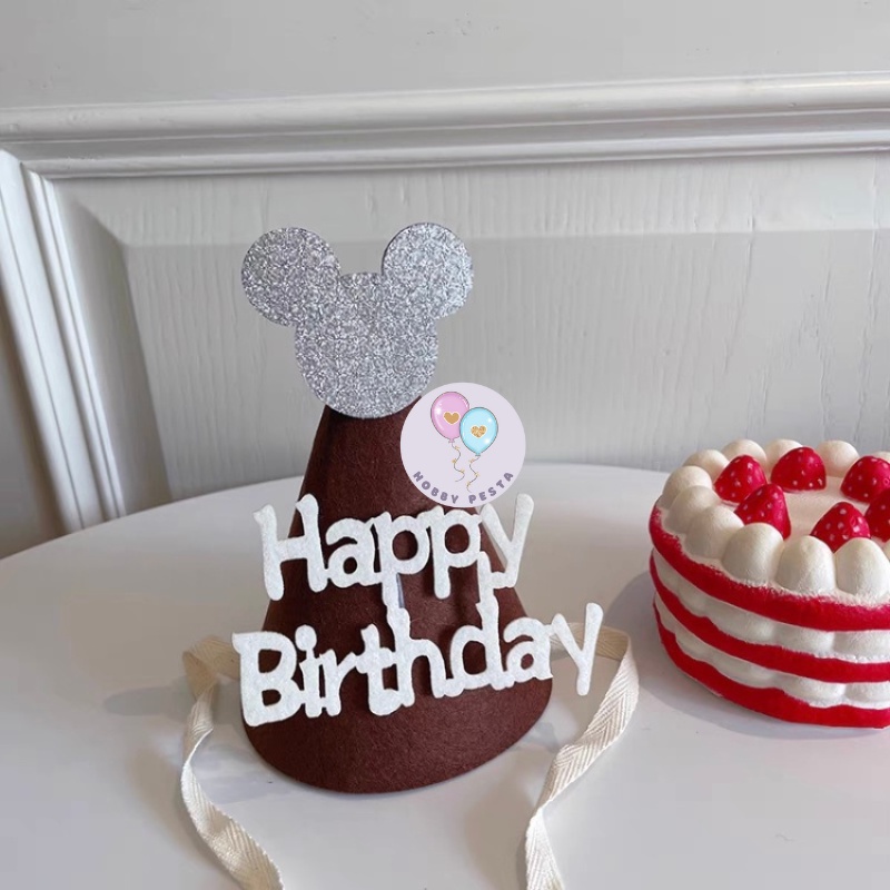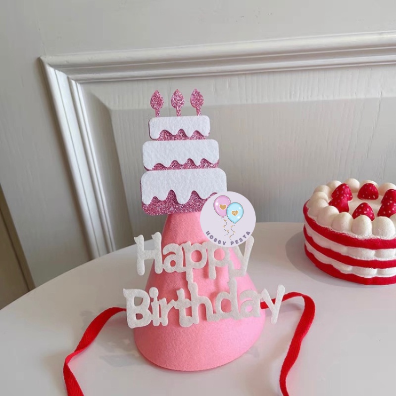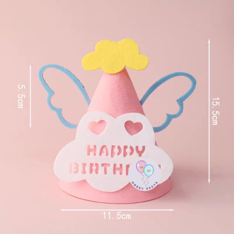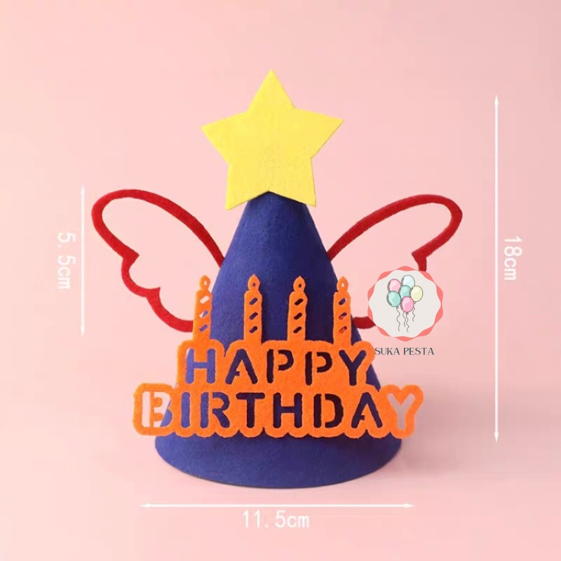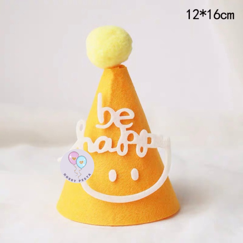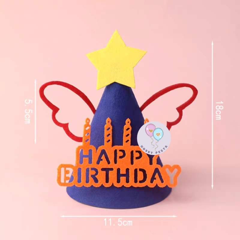 TOPI ULTAH KERUCUT HBD BAHAN KAIN FLANEL / TOPI ULANG TAHUN / TOPI PESTA