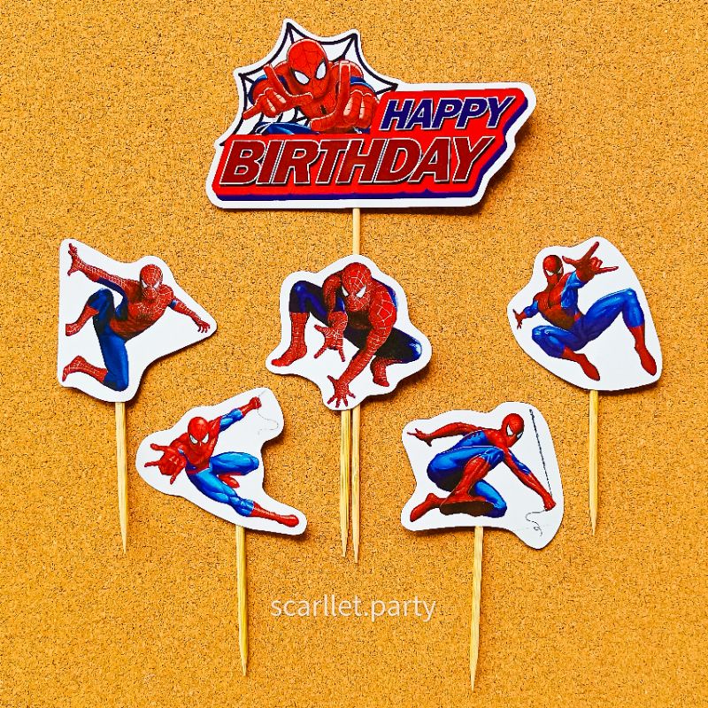 TOPPER CAKE HBD SPIDERMAN HAPPY BIRTHDAY ULANGTAHUN ULTAH ANAK COWOK HIASAN KUE TART DEKORASI TUSUKAN KUE DEKOR